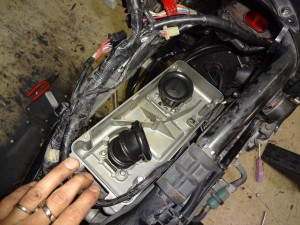 バンドを緩めたらキャブレターベースをグイッと持ち上げて、