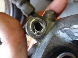 必ずリヤブレーキキャリパー側からもブレーキフルードを抜いておくこと。