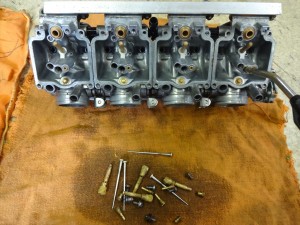 取り出したキャブレター本体、インナーパーツ類を