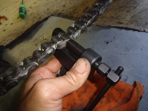 そのままチェーンをカシめてしまいチェーンの交換作業完了です。