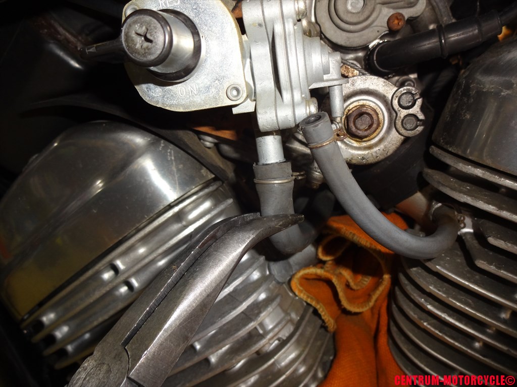 続いて車体反対側に移動して、リヤバンクのキャブレターの