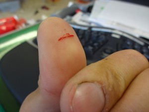 切れ味はどうかなーとか言いながら指を当てたら・・・