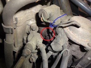 キャブレター側のこの溝に引っ掛かって、バンドで