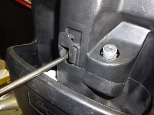 まずはシートロックを開けてメットインボックス内部に