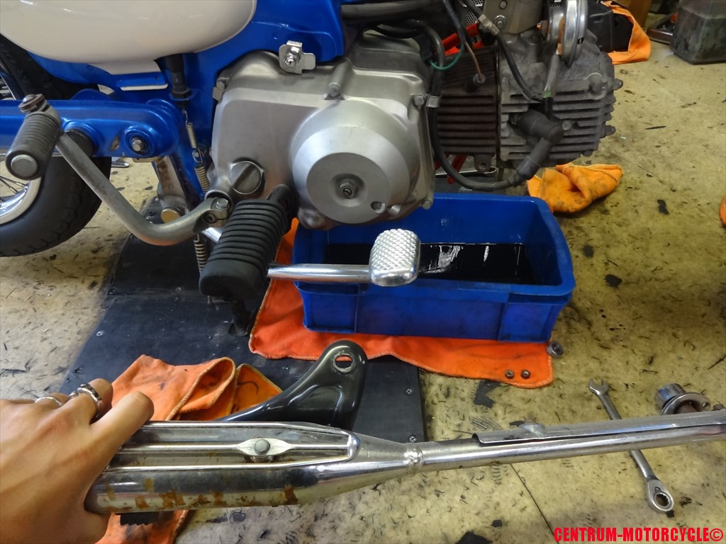 オイルを排出し終わったら、フライホイールを反時計回りに