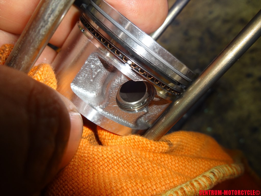ピストンの向きはピストンヘッドの矢印がエキゾースト側を
