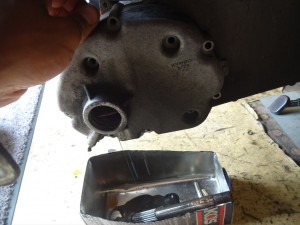 カバーが少し浮くと、中からギヤオイルが出てきますので