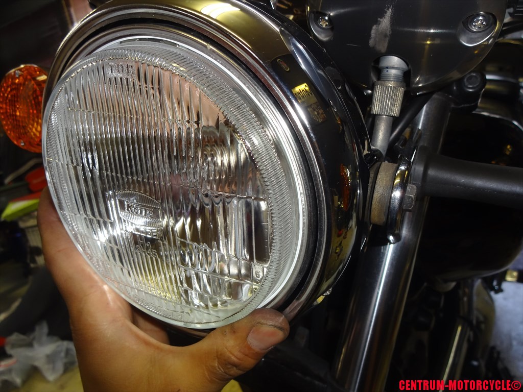 ヘッドライトケース内部に手を入れて、配線をグイグイと