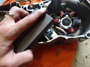 ガスケットを剥がし終えたら、必ずオイルストーンを