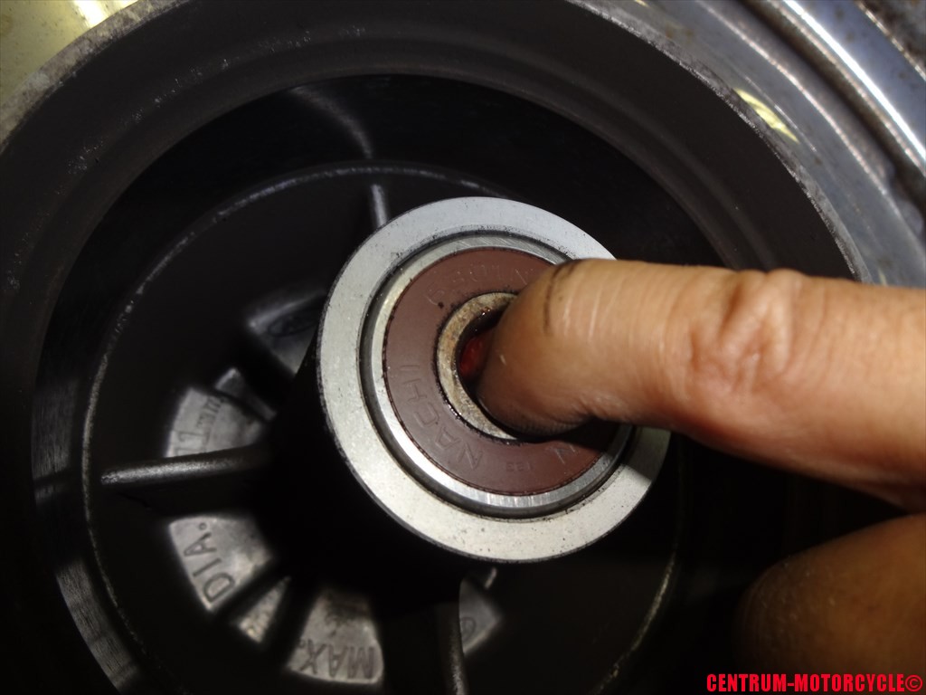 ホイールを取り付ける前に、予めベアリングの動作チェック、