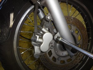 ボルトを取り外してブレーキホースを取り外しましょう。