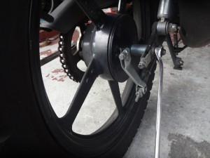 リヤホイールを取り外したら、ドラムパネルも