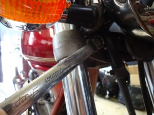 トップブリッジの固定ボルトを緩め終えたら、