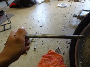 まずはアクスルシャフトをフォーク底部にある