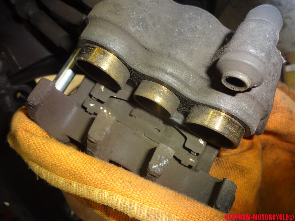 真ん中のピストンはリヤブレーキとのコンビブレーキ用の