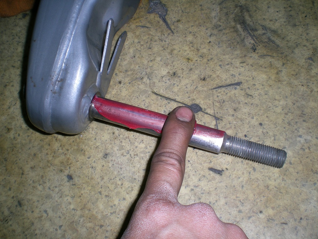 ペーパーを掛けてキレイにしておいたスイングアームのシャフト部分に