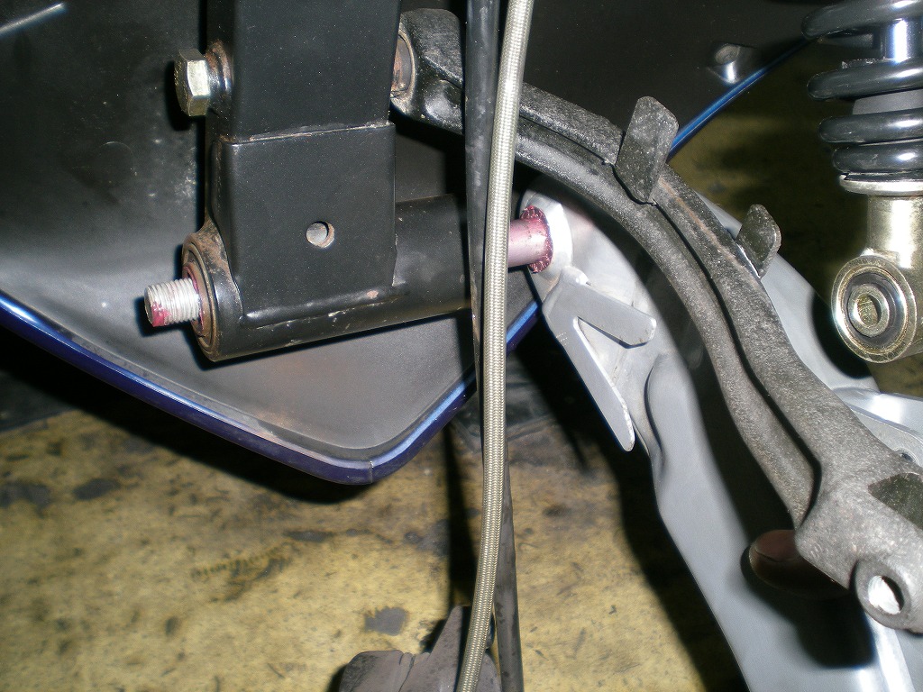 とりあえずボルトを入れてスイングアームとサスペンションを仮固定します。