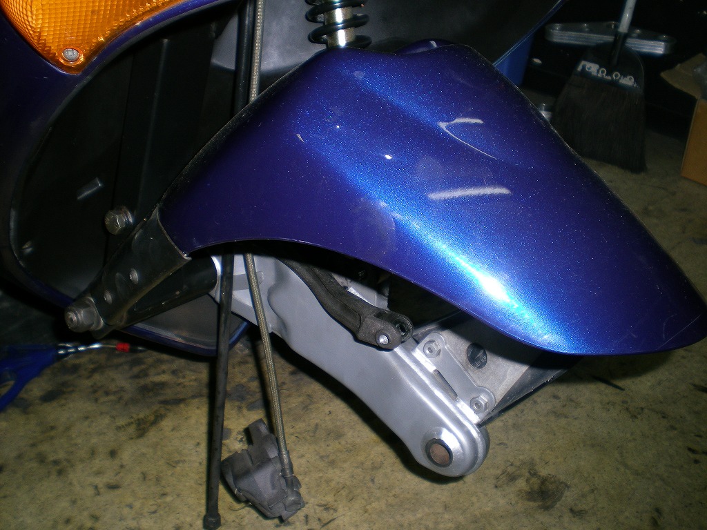 フェンダーの仮固定が終わったら、スイングアームのピボット部分を