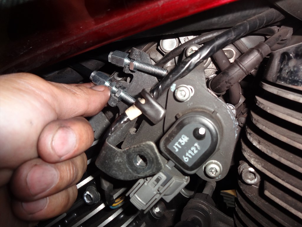 スロットルケーブルをくるくると回しながら、