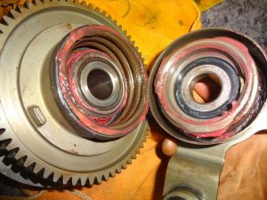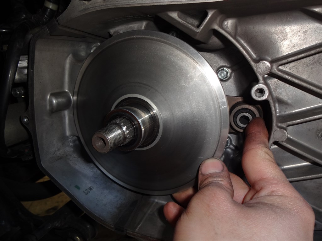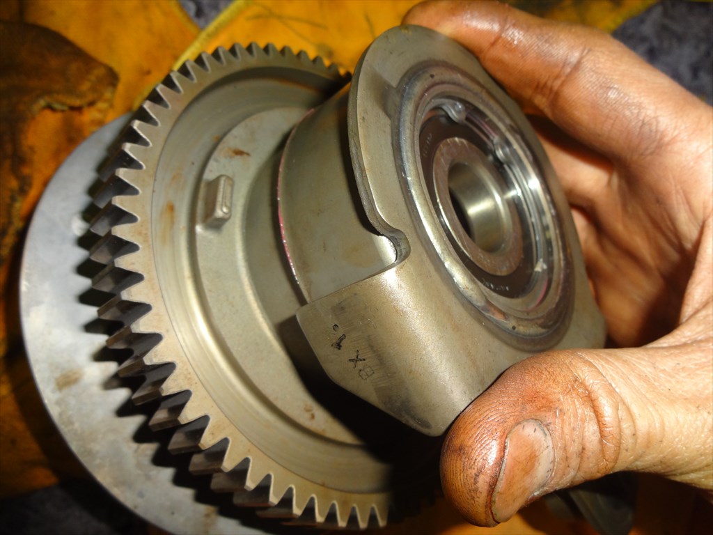 この時、奥にあるギヤとドライブプーリーのギヤを
