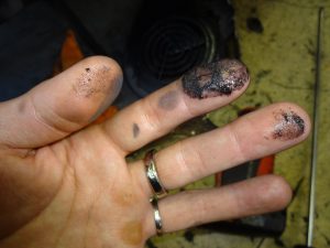 バイクも手も出来るだけ汚さないように