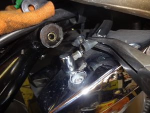 ボルトを取り外したら、ガソリンタンクとフレームとの