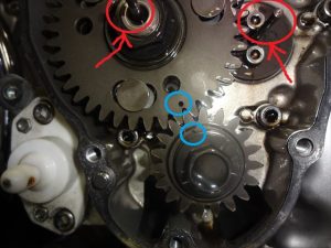 んでカバーを取り外したらカムシャフトドリブンギヤ(左上)と