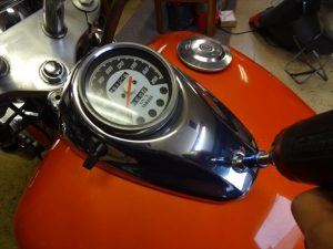 スピードメーターを取り外しましょう。