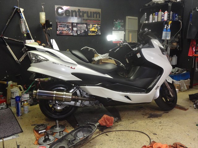 スカイウェイブ250の整備中なんですね。