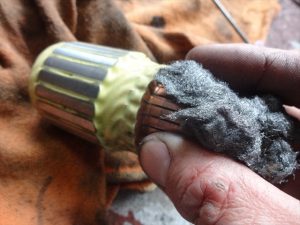 ブラシの摩耗粉を細いピックなどで