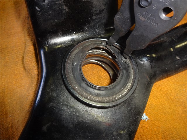 サイレンサーバンドの固定ボルトを取り外してっと。