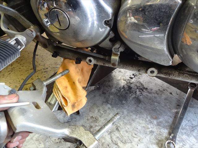 サイドスタンドブラケットの固定ボルト周辺部や、