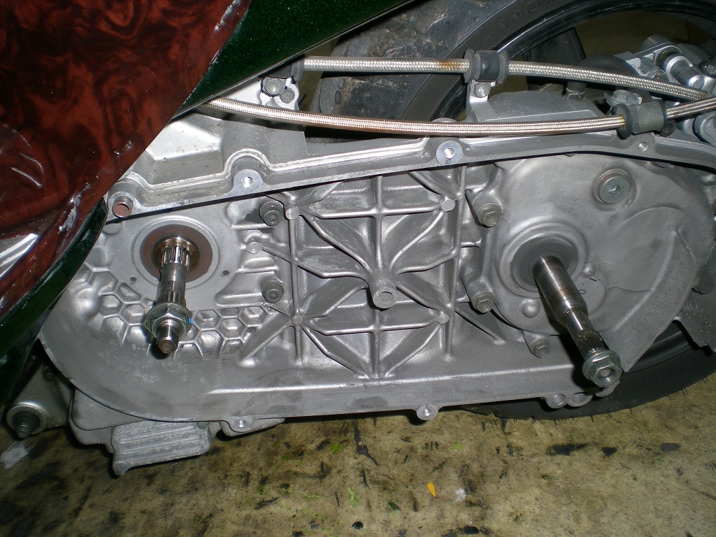 プーリーやらクラッチ廻り一式を取り外してみました。