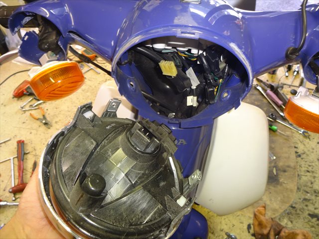 で、ヘッドライトを取り外したらそのあたりに