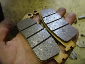 パッドピンを抜き取ると同時に、ブレーキパッドも
