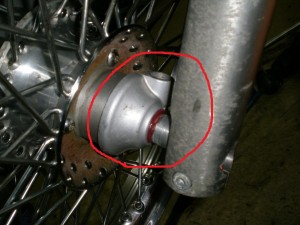 アクスルシャフト部とフォーク下部の緩み止めのボルト部分に