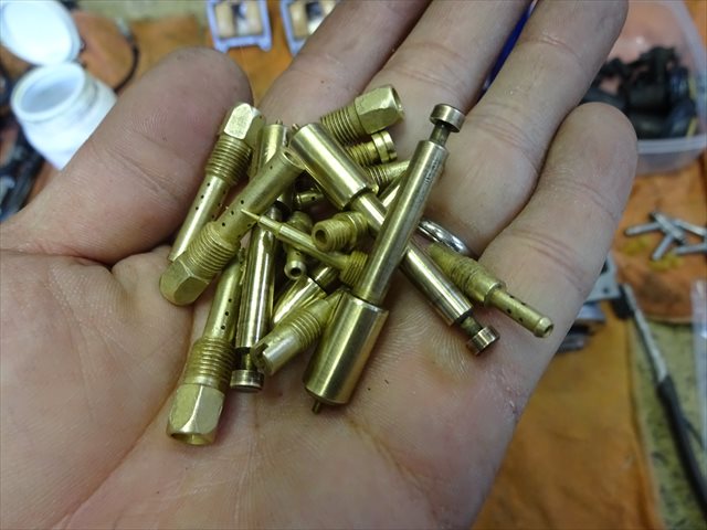 ジェット類を真鍮ブラシで磨き上げていきます。