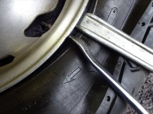 掛かりが甘いの、もう一度短いタイヤレバーで