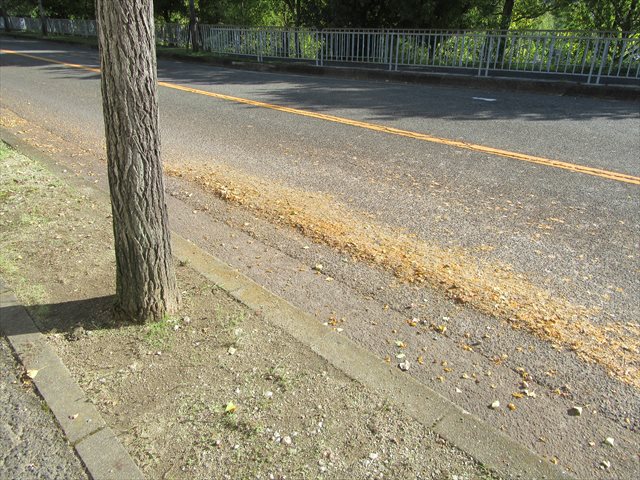 この季節になると銀杏が道路に落ちて