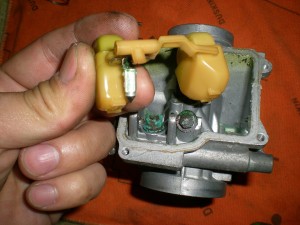 キャブレターに付いたままになっているケーブル類を取り外していきますが