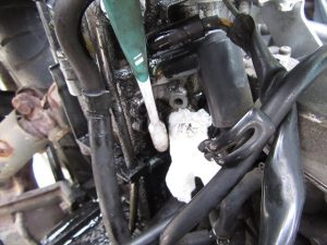 歯ブラシに浸けてからエンジンをゴシゴシ