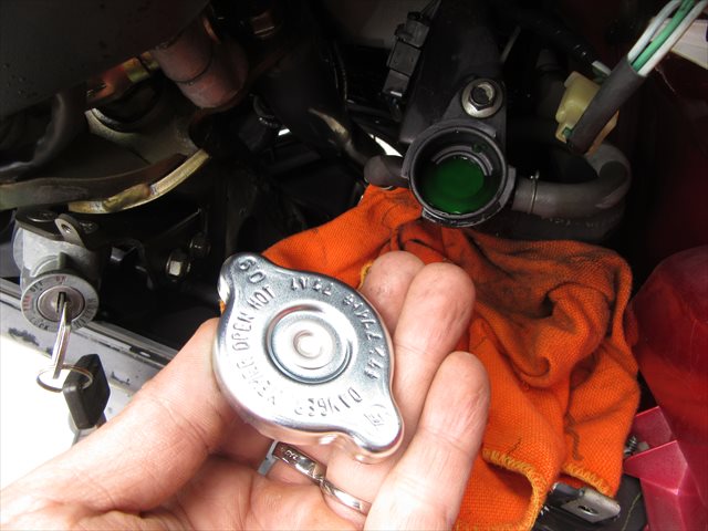 慣れない内はラジエターキャップを閉めて、