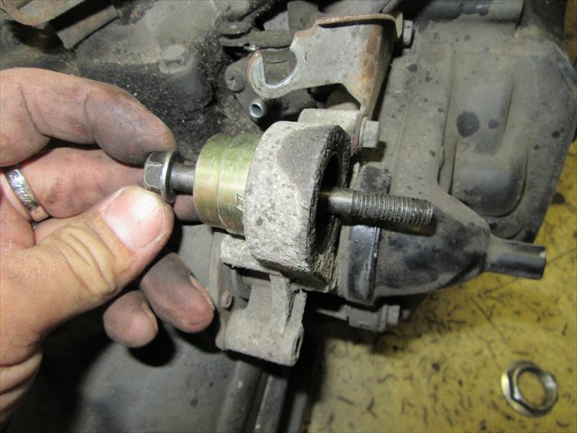 残る右側のエンジンハンガーブッシュ取外し作業に