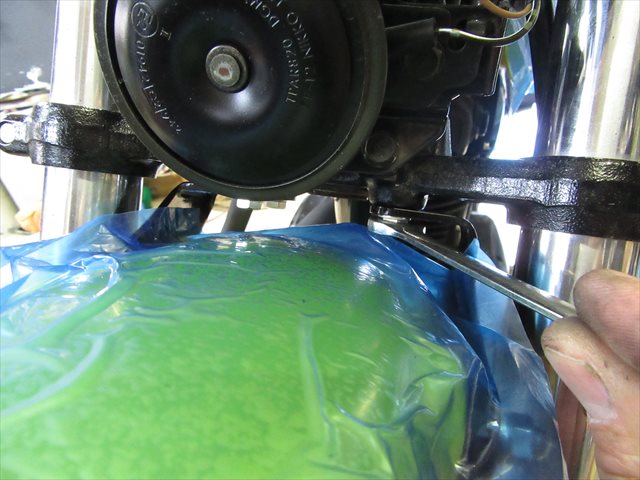 フェンダー内側からボルトを入れ、前側は袋ナットと