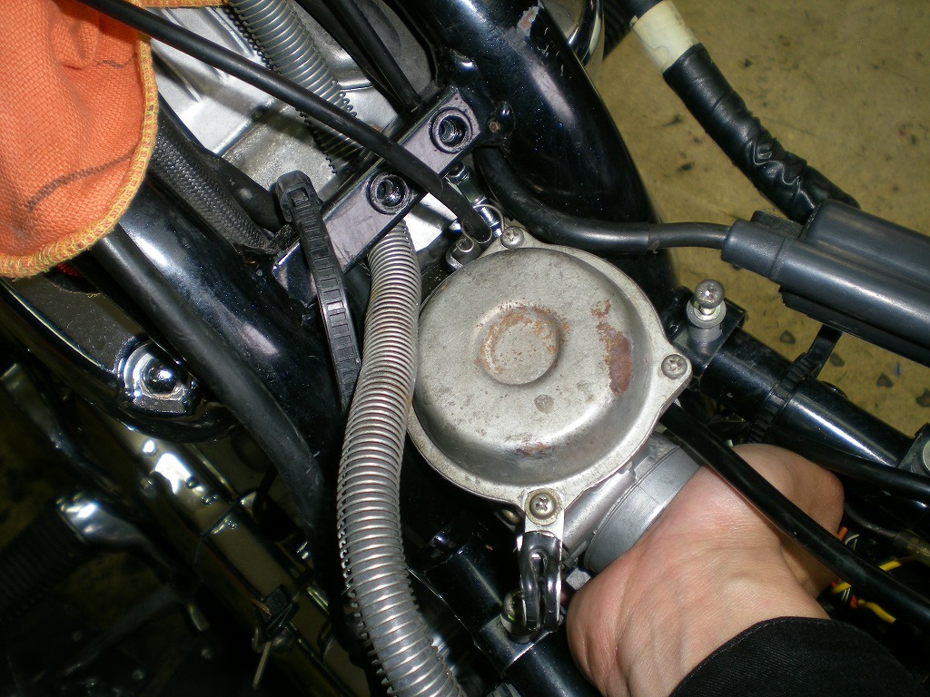 エアークリーナーBOXに固定し、キャブレターと接続します。