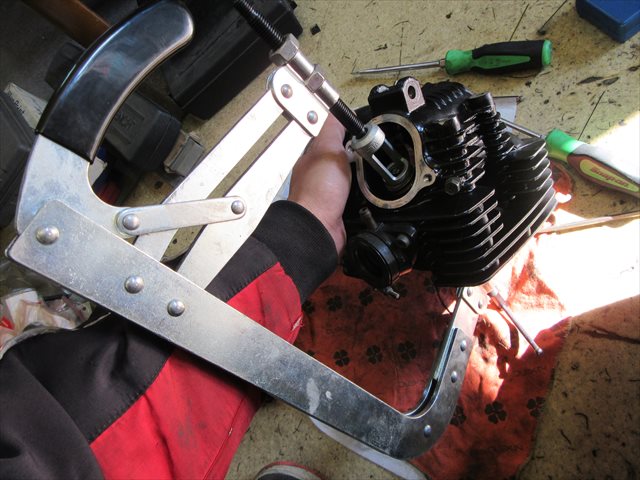 バルブスプリングコンプレッサーを使用してバルブを分解して行きたいと思います。