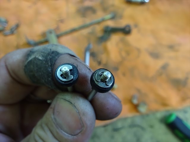 この部分が楕円形に摩耗していると、いくらキャブレターをオーバーホールしても中開度~全開域での調子が出ず、燃調がリッチになってしまいますのでご注意を。
