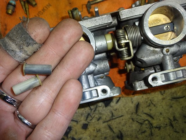 バキュームピストンの取外し、ノズルの取外し、ジェットニードル、パイロットスクリューの取外しまで終わった所まででしたね。