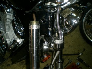 フロントフォークの脱着はちょっと他の車両と異なった