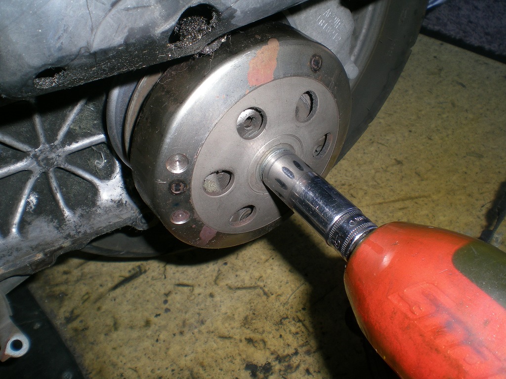 その後、クラッチアウターをインパクトレンチで締め付けて、